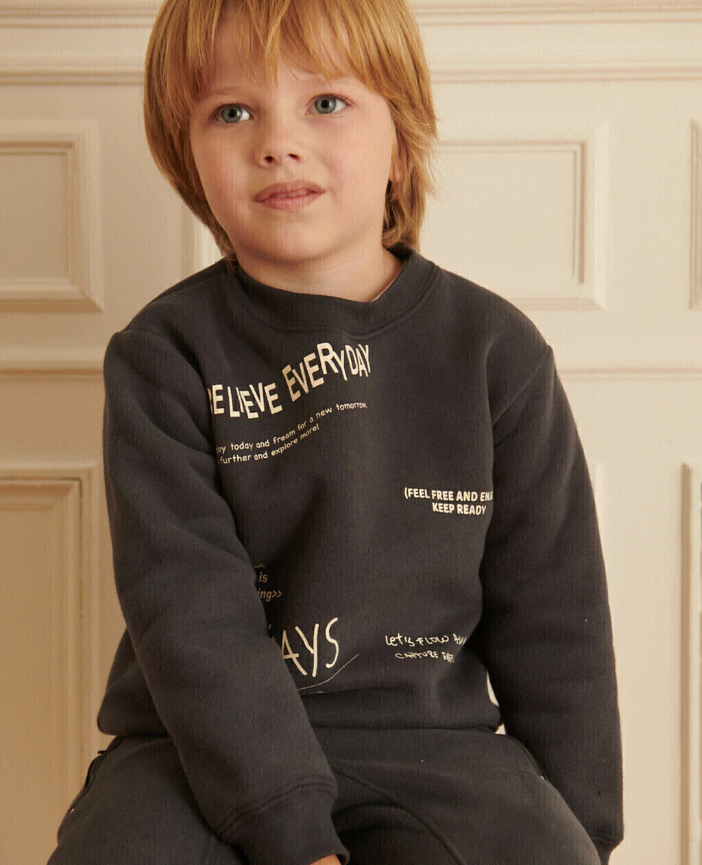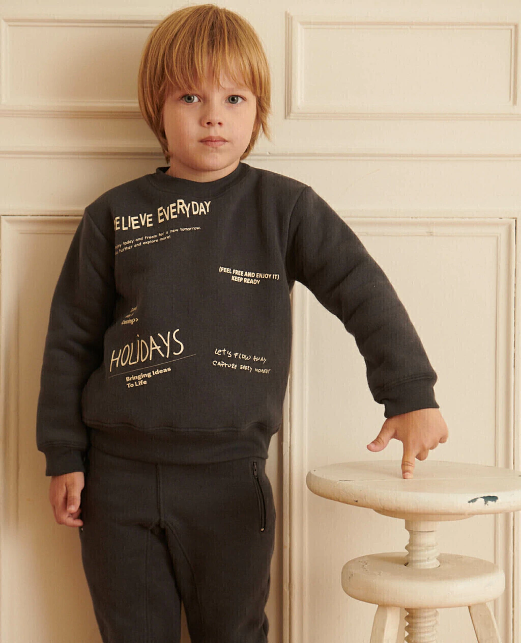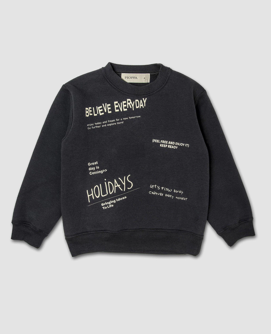 Buzo confeccionado en frisa. Este es un tejido de punto, suave, cálido y abrigado. Posee cintura y puños confeccionados en rib, que es un textil de algodón suave, elástico y con una superficie acanalada, optimizando el ajuste y aportando comodidad en el uso. Su estampado es de diseño exclusivo Pioppa