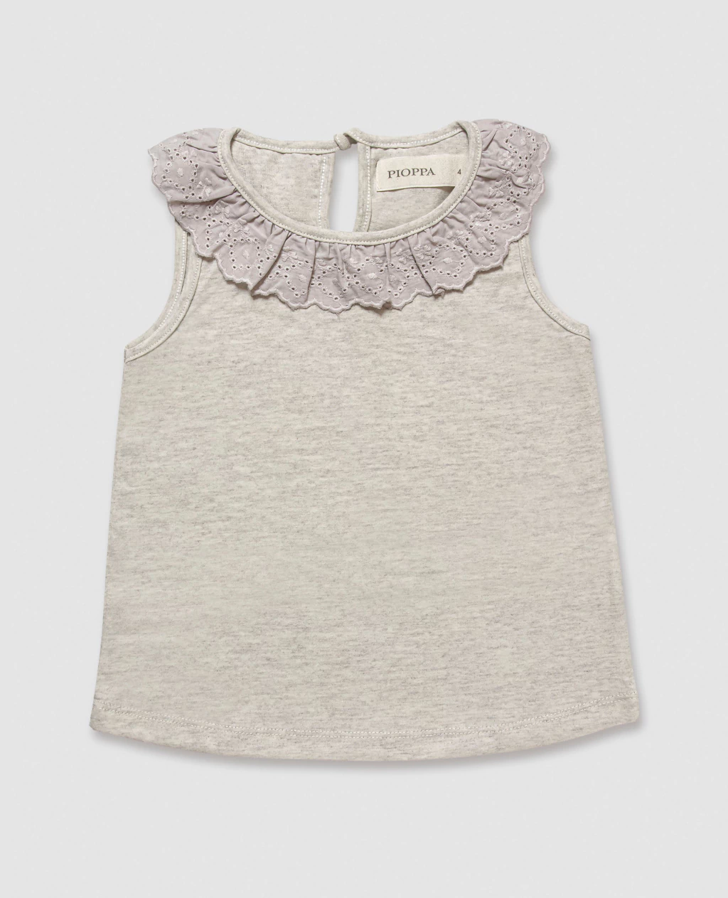 Se destaca por el delicado detalle de broderie en el cuello, que forma un volado romántico y dulce.