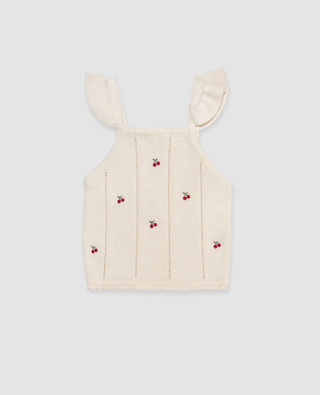 Top tejido con hilado 100% algodón, suave y liviano, ideal para los días más cálidos de la temporada.