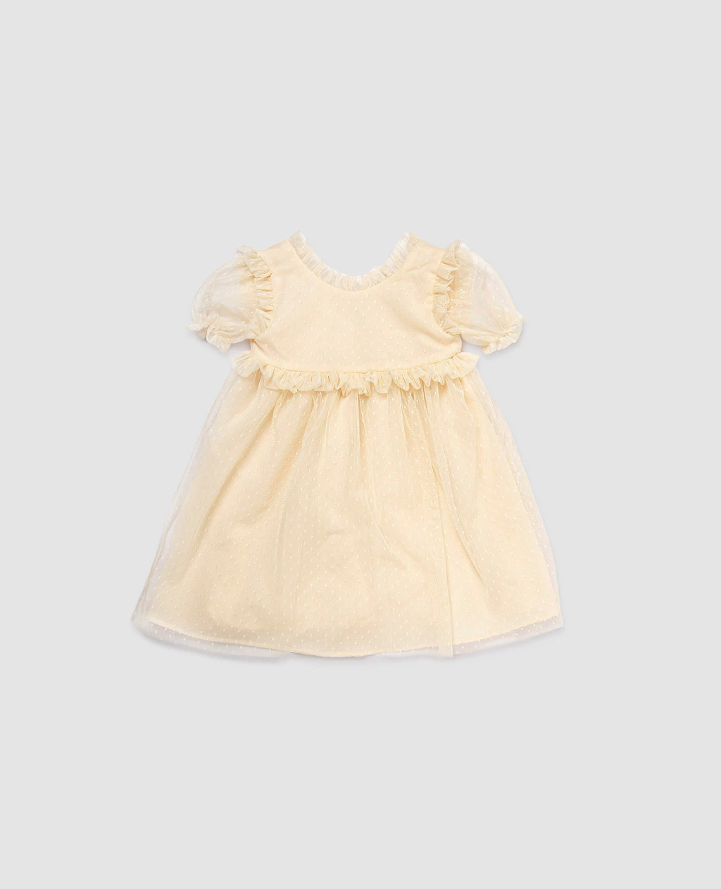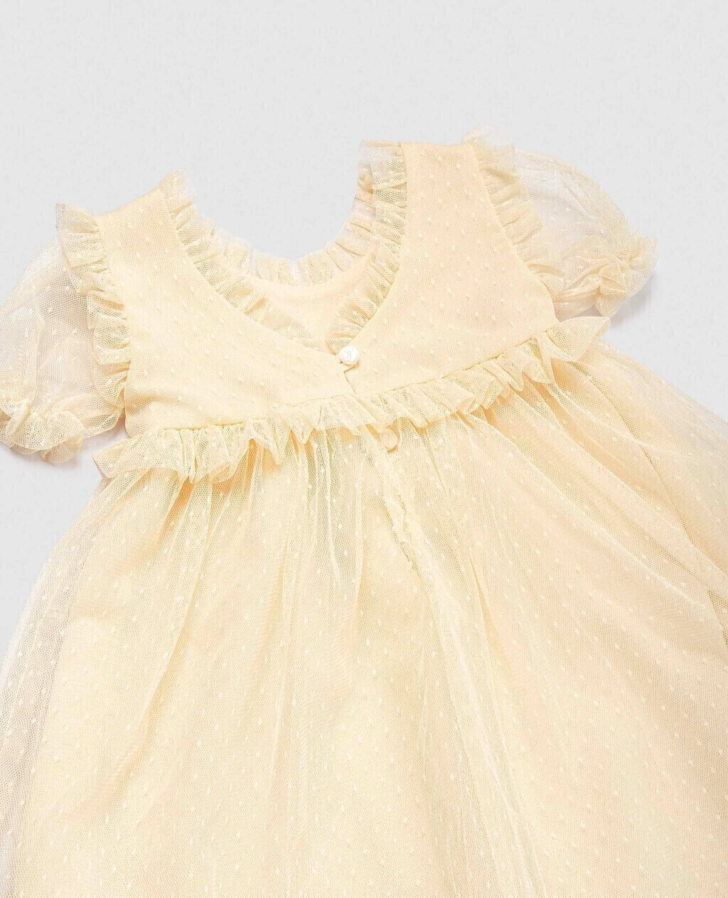 Tapado confeccionado con un hilado grueso y tejido en punto Jersey. Este tejido se caracteriza por ser liso, suave y con buena elasticidad. Su diseño cuenta con cuello corte inglés y un delicado frunce en el comienzo de las mangas que le aporta volumen a las mismas. Sus botones son metálicos a tono y con el borde dorado.